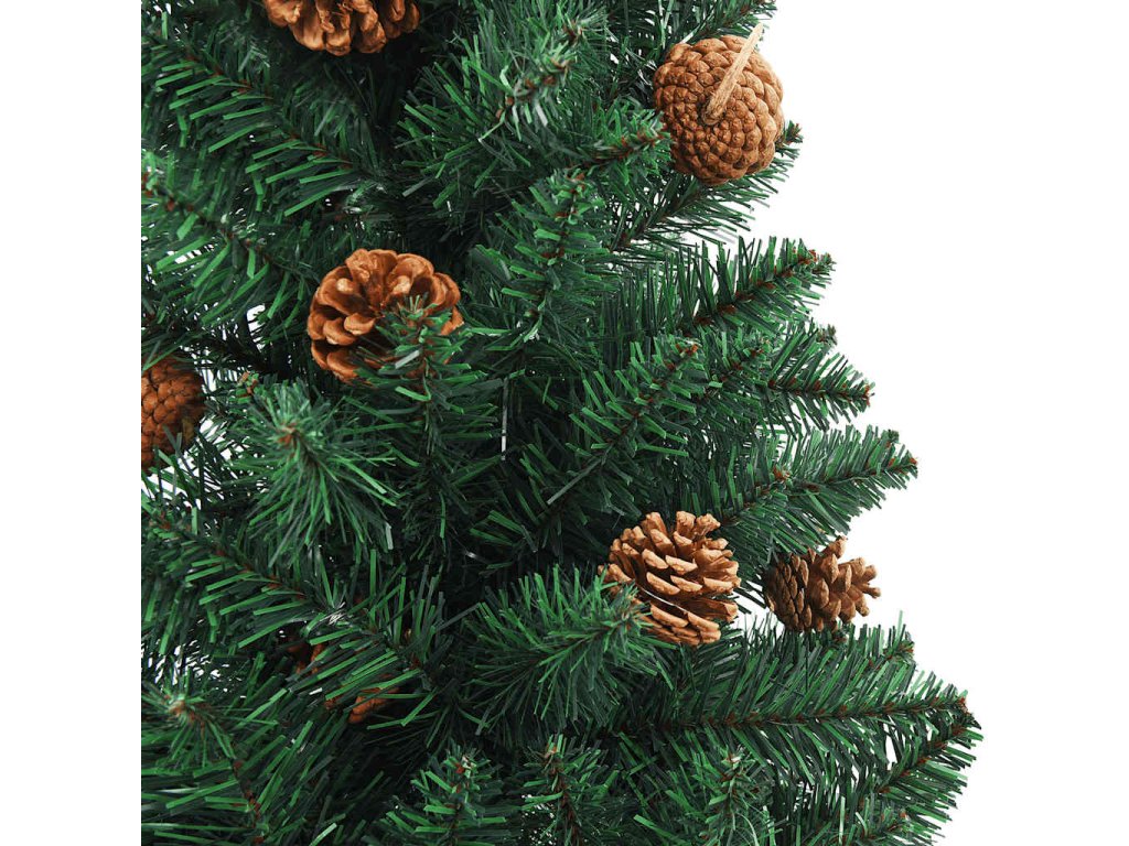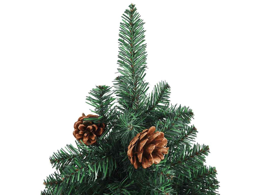 Tento krásný vánoční stromek s jehličnatými větvičkami a ozdobnými šiškami působí svým tvarem i vzhledem úplně jako živý. Stromek je vyrobený z PVC, borového dřeva a práškově lakované oceli, je tedy mimořádně stabilní a odolný. Vánoční stromek lze používat rok co rok, ve srovnání s živým stromem jde tedy o úspornější variantu. Je vybaven energeticky úspornými LED světly, krásně svítí a vytváří útulnou vánoční atmosféru. Vánoční stromek je navíc ozdobený krásnou špičkou a koulemi a bude středem pozornosti vašeho domova.