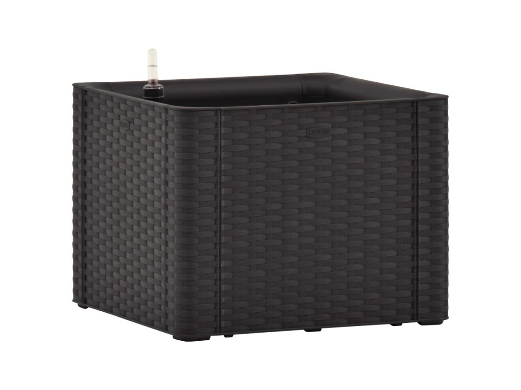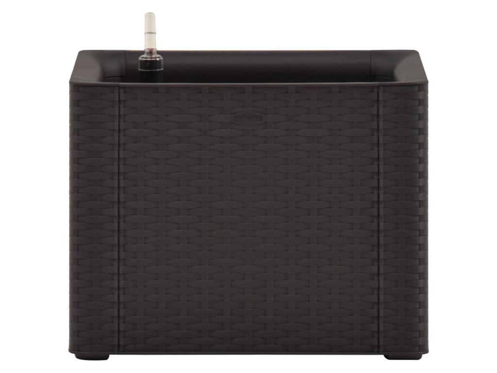 Tento zahradní truhlík je vyrobený z robustního polypropylenu (PP), který je odolný vůči povětrnostním podmínkám, mrazu a UV záření a je vhodný pro vnitřní i venkovní použití. Design připomíná strukturu pravého ratanu. Do tohoto truhlíku se vejde velké množství zelených rostlin a květin. Truhlík je navíc vybavený samozavlažovacím systémem a indikátorem hladiny, který zabraňuje nadměrnému zalévání.